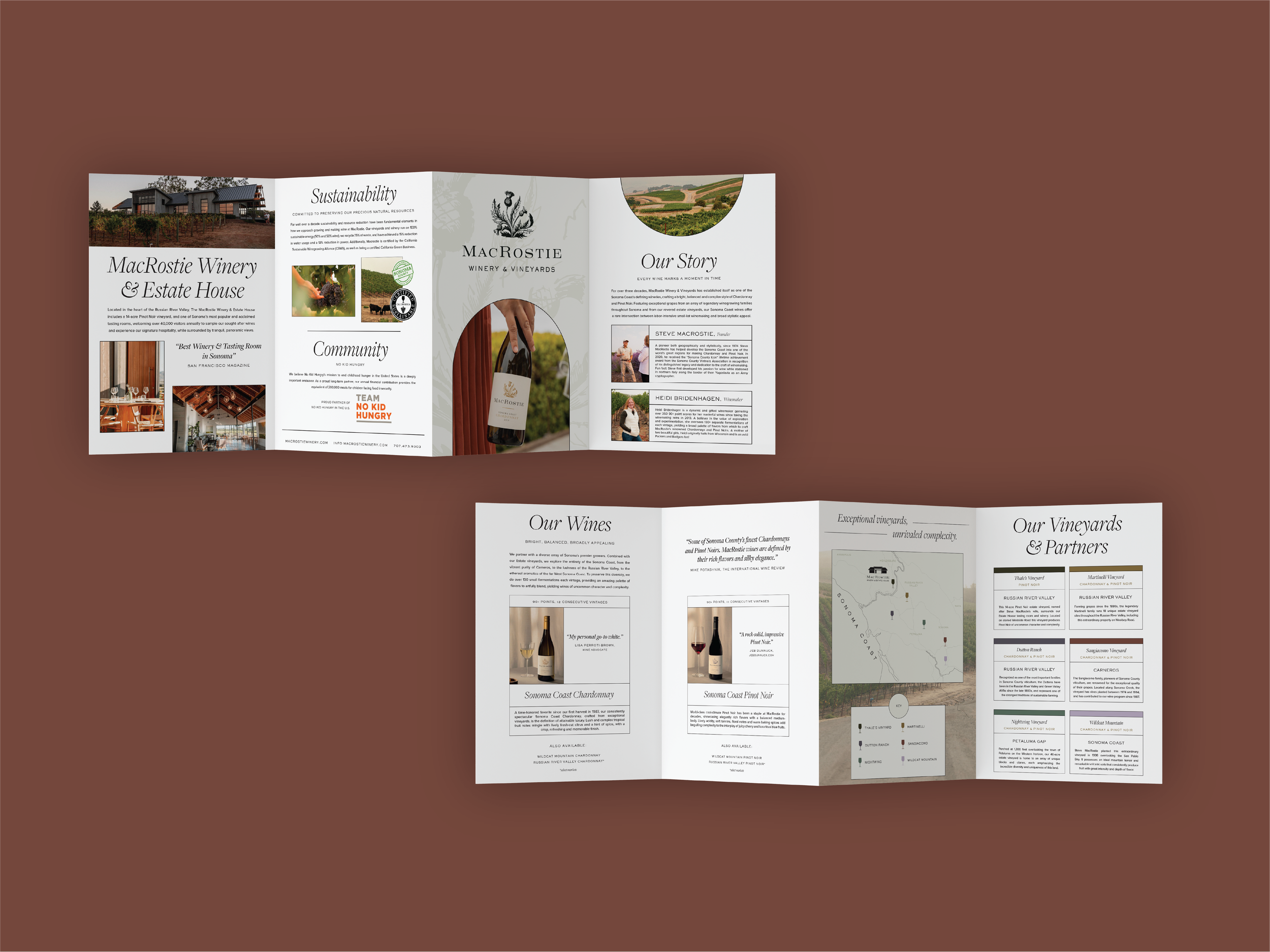 After providing MacRostie with a refreshed brand identity, I was tasked with formatting a trade brochure that highlighted the updated brand story while remaining in line with the overarching visual identity.