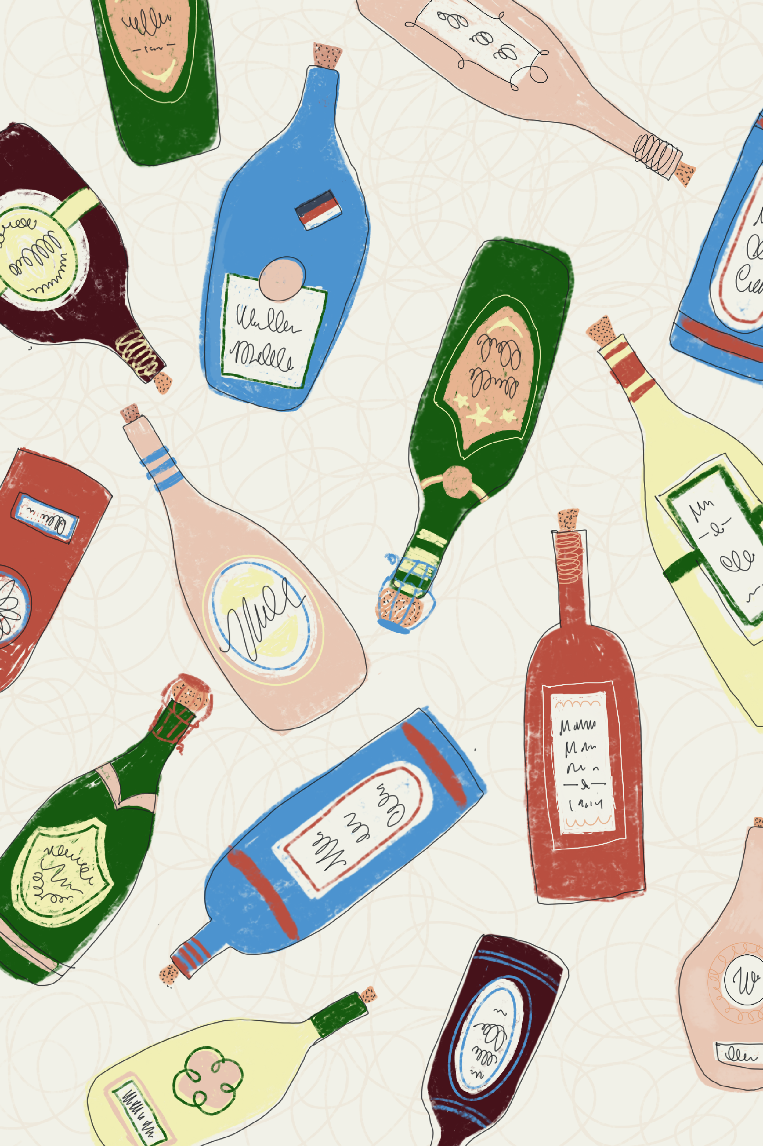 Hand-done illustrations of wine bottles punctuate collateral elements and lend a fun, carefree style to the Petite Left Bank brand. Using a gestural style inspired by the early Rive Gauche painters,